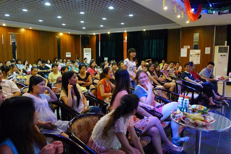 当月生日的员工凭着同贺卡一起发放的晚会邀请卡参加晚会,晚会由表演节目、互动游戏、齐唱生日歌、吃生日蛋糕、领取生日礼物等环节组成。